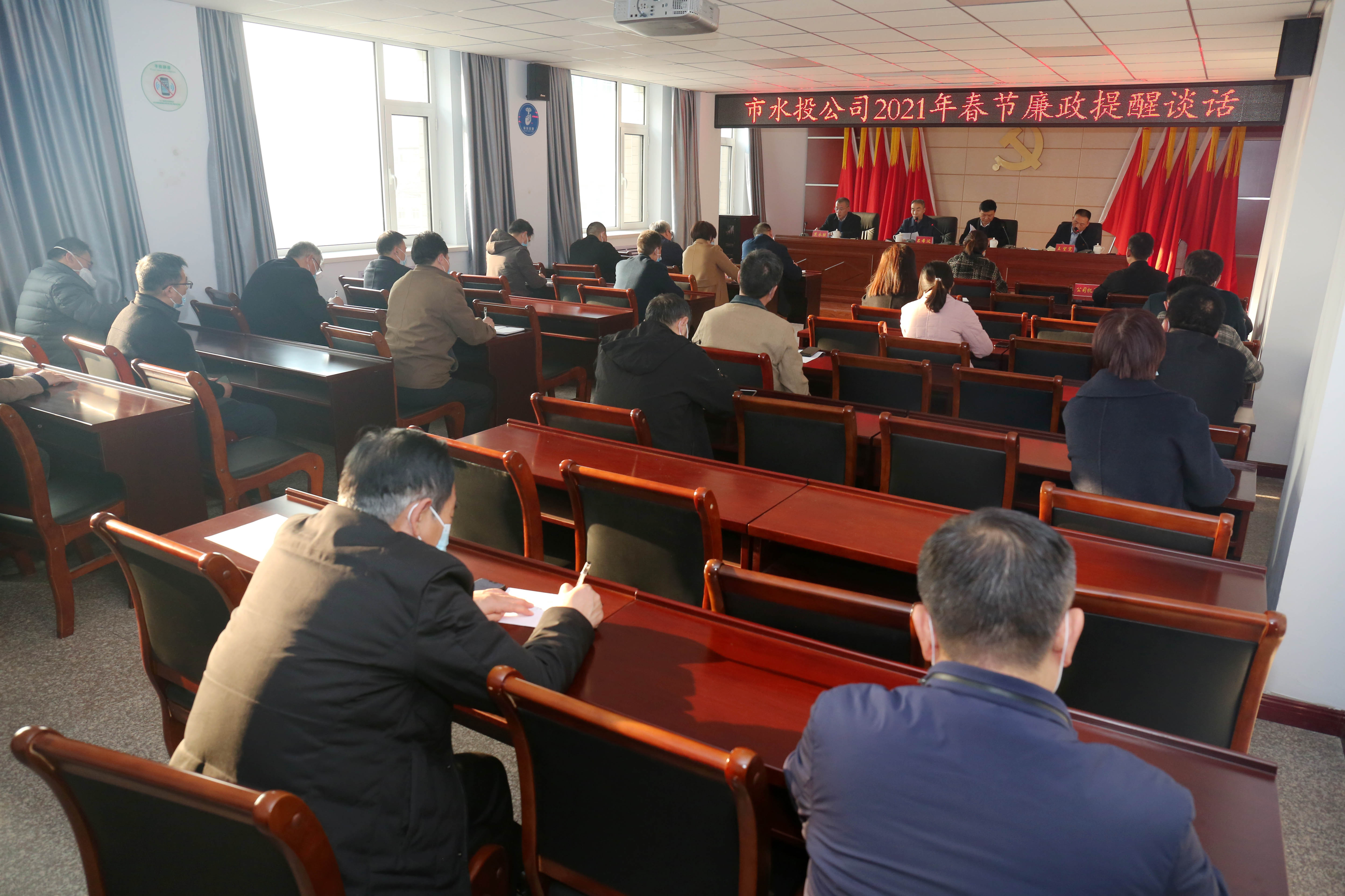 2021年新春佳節(jié)將至,為進一步落實全面從嚴治黨要求,持之以恒貫徹落實中央八項規(guī)定精神,嚴防“四風”問題在春節(jié)期間反彈,確保全體干部職工度過一個歡樂祥和、文明節(jié)儉、風清氣正的節(jié)日,2月9日下午,我公司召開2021年春節(jié)前廉政提醒談話會,持續(xù)敲響紀律警鐘。公司領(lǐng)導(dǎo)班子成員、機關(guān)中層干部、各下屬單位領(lǐng)導(dǎo)班子成員參加會議。