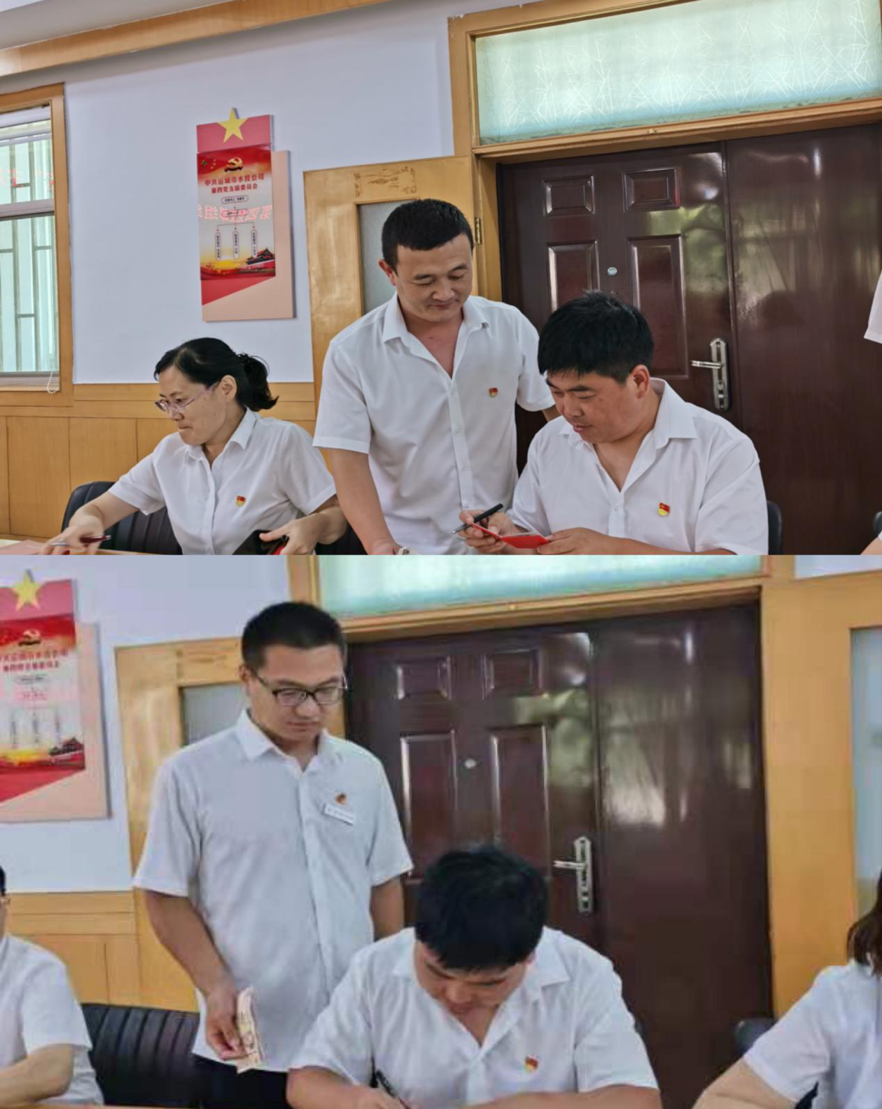首先,全體黨員逐個(gè)向支部繳納了本月黨費(fèi),并進(jìn)行了黨費(fèi)收繳臺賬登記。