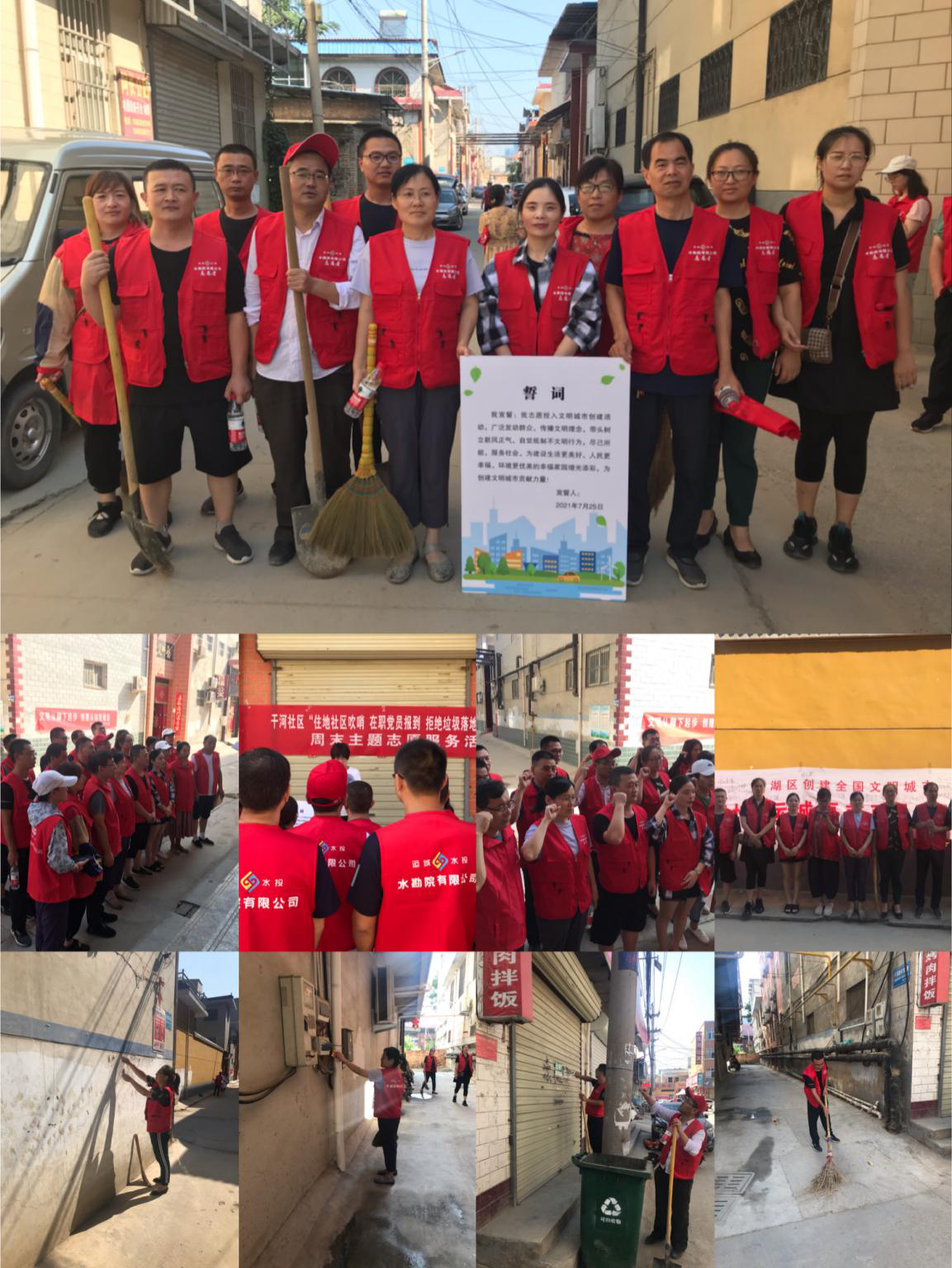 會前,為進(jìn)一步深化公司黨史學(xué)習(xí)教育活動工作,推動“我為群眾辦實(shí)事”實(shí)踐活動走深走實(shí),按照《運(yùn)城市“社區(qū)吹哨、黨員報(bào)道”專項(xiàng)行動方案》工作要求,第四黨支部利用節(jié)假日(周日)組織黨員赴干河社區(qū)開展“住地社區(qū)吹哨、在職黨員報(bào)到、拒絕垃圾落地、共創(chuàng)文明城市”主題黨日志愿服務(wù)“+”活動。