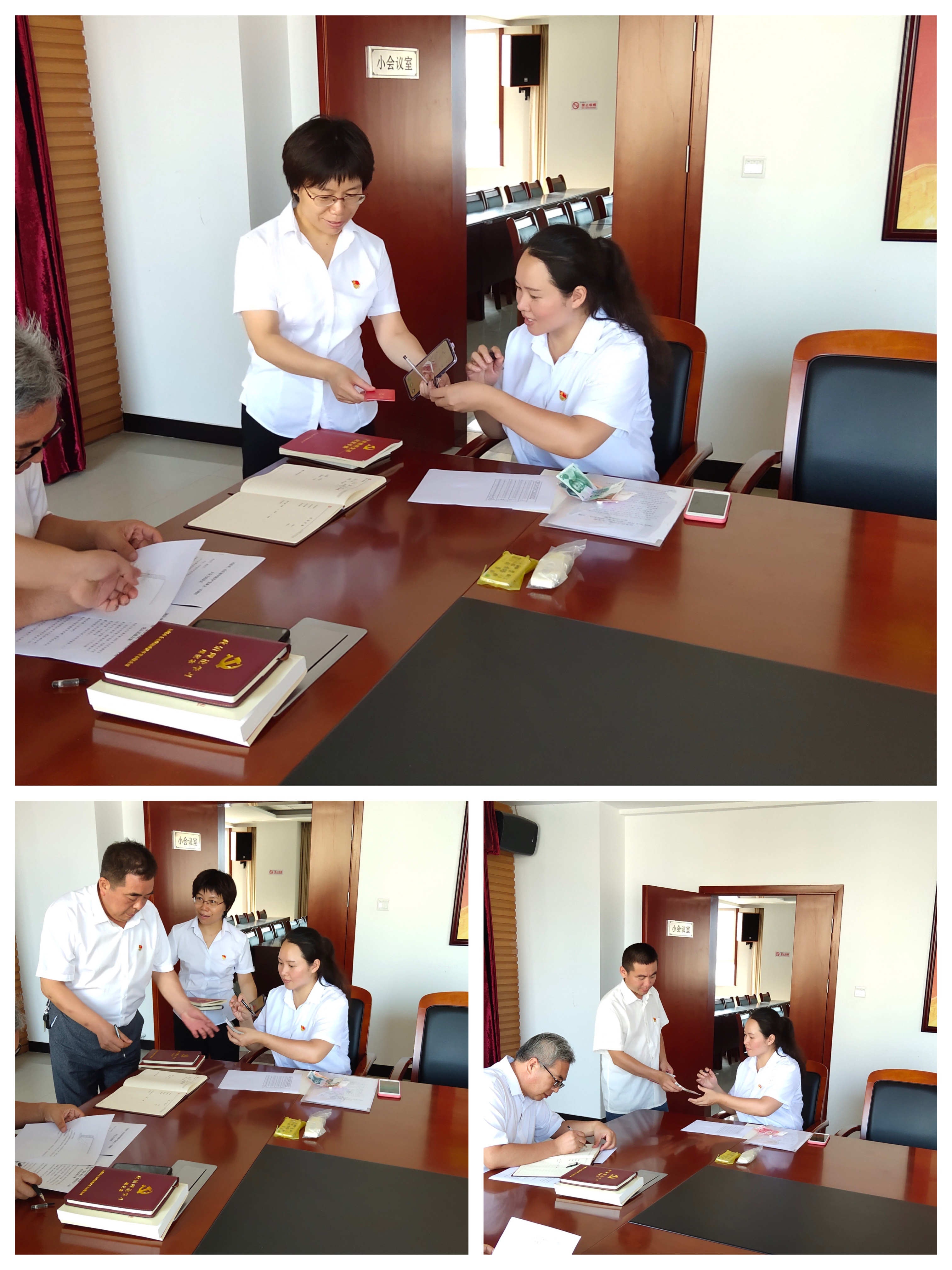 在主題黨日上,黨員集中繳納了本月黨費(fèi),并在支部黨員大會(huì)記錄本和“三晉先鋒”軟件上簽到。