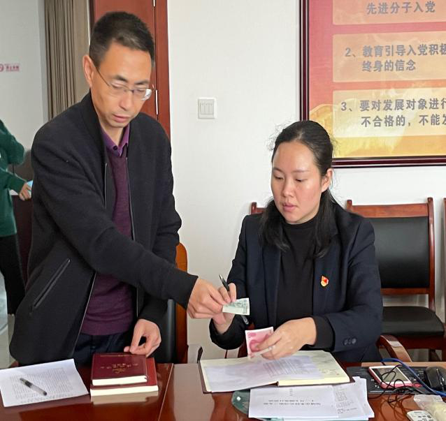 在主題黨日上,黨員集中繳納了本月黨費(fèi),并在支部黨員大會(huì)記錄本和“三晉先鋒”軟件上簽到。