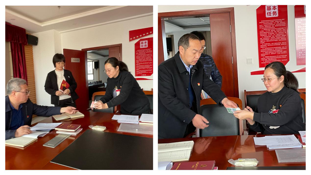 在主題黨日上,黨員集中繳納了本月黨費(fèi),并在支部黨員大會(huì)記錄本和“三晉先鋒”軟件上簽到。