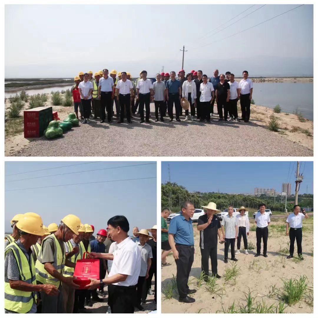 隨后,公司領(lǐng)導(dǎo)一行人來到鹽湖項(xiàng)目11號堤埝施工現(xiàn)場,慰問在高溫酷暑下堅(jiān)持奮戰(zhàn)在一線的工人,并為他們送去防暑降溫慰問品。同時,深入鹽湖堤埝二號灘和19號路,詳細(xì)了解灘面護(hù)坡綠化情況,坡面綠草茵茵,不同種類植物長勢喜人;現(xiàn)場查看了傾斜電桿更換和扶正處理后情況,一定程度上消除了安全隱患,確保周邊居民和鹽池防汛調(diào)水用電安全,同時也起到了美化環(huán)境效果。