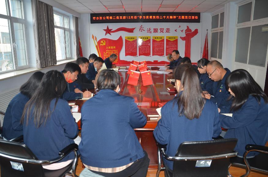 按照市水投公司黨委統(tǒng)一部署要求,第二黨支部于2022年12月5日下午組織全體黨員、積極分子開(kāi)展了“學(xué)習(xí)貫徹黨的二十大精神”主題黨日活動(dòng)。