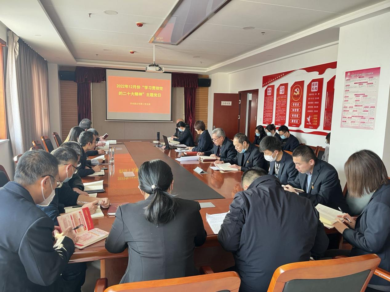 按照市委組織部《關(guān)于認(rèn)真開展2022年12月黨支部主題黨日活動的通知》要求,結(jié)合公司黨委安排部署,12月5日下午,支部組織黨員、各科室負(fù)責(zé)人和群眾代表開展了“學(xué)習(xí)貫徹黨的二十大精神”主題黨日活動。