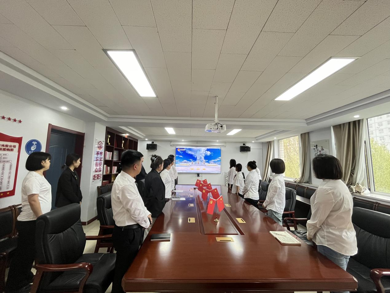 活動開始,干部職工觀看《你記得我、我就活著》宣傳教育片重溫英烈故事。