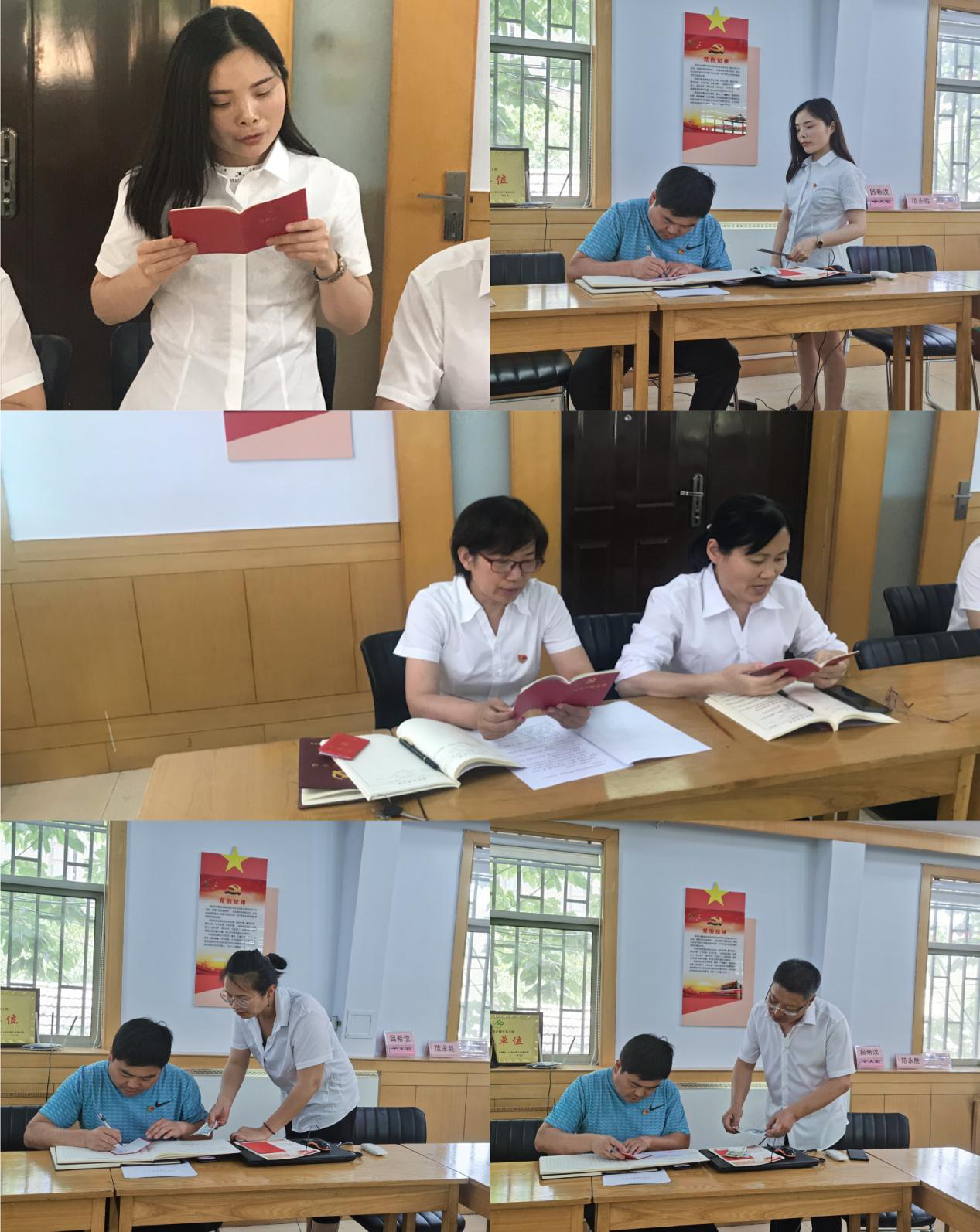 首先,全體黨員分別向支部繳納了本月黨費(fèi)并在黨費(fèi)證上進(jìn)行了登記。支部公開了5月份“學(xué)習(xí)強(qiáng)國”、“黨費(fèi)”及開展活動(dòng)情況。在張婷同志的領(lǐng)誦下,全體人員齊誦了《黨章》第二章“黨的組織制度”部分內(nèi)容。