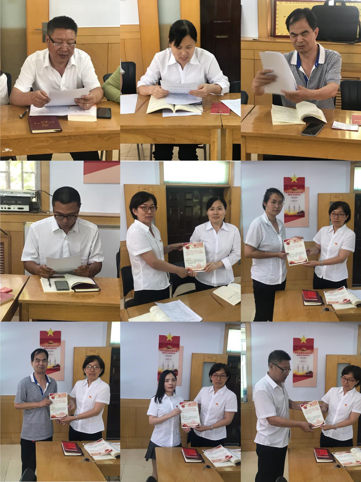 會(huì)上,支部書記楊素平同志向本月政治生日黨員馮沛濤、狄紅革、師琴等7名同志贈(zèng)送了生日賀卡。生日黨員分別領(lǐng)學(xué)了《習(xí)近平總書記在中共中央政治局第二十九次集體學(xué)習(xí)時(shí)的重要講話精神》、《用好紅色資源、傳承好紅色基因,把紅色江山世世代代傳下去》、《焦桐常青,精神永存——習(xí)近平總書記到過的紅色圣地之河南篇》、《關(guān)于常態(tài)化開展掃黑除惡斗爭成果的意見》相關(guān)文件精神,并向全體黨員分享了自己入黨經(jīng)歷。