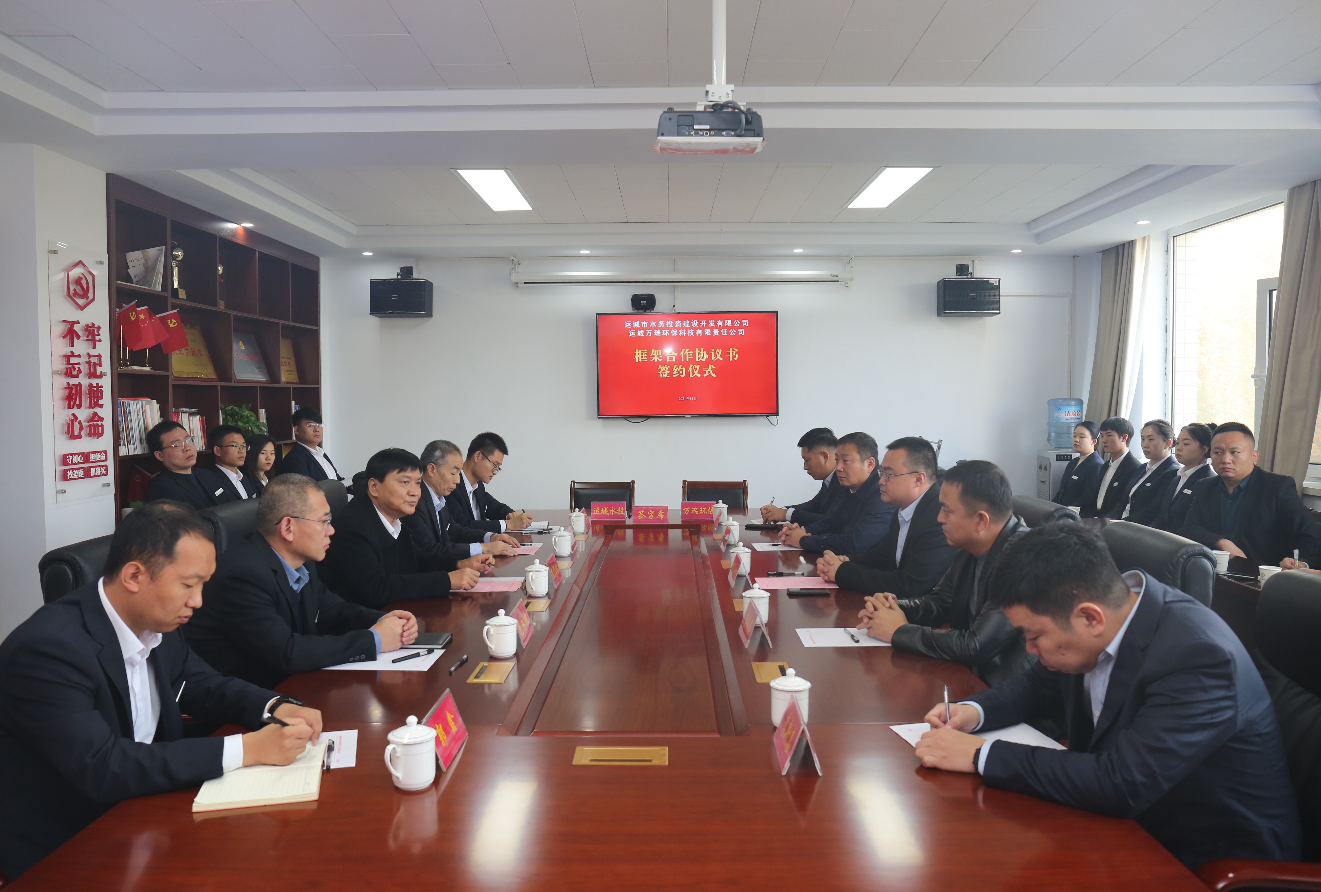 11月5日,運城市水務(wù)投資建設(shè)開發(fā)有限公司(以下簡稱市水投公司)與運城萬瑞環(huán)保科技有限責(zé)任公司(以下簡稱萬瑞環(huán)保公司)框架合作協(xié)議簽約儀式,在市水投公司隆重舉行。