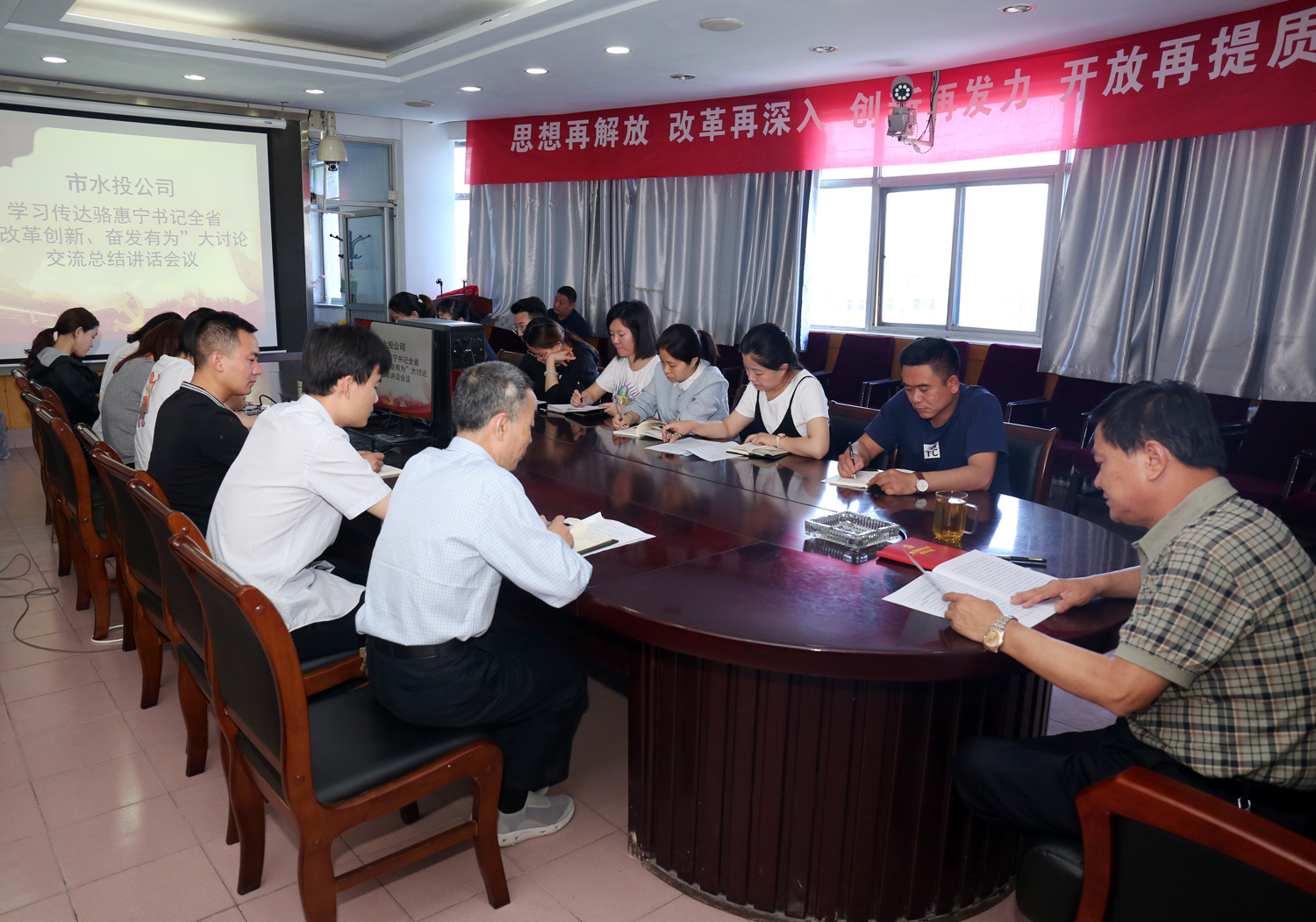 5月20日上午,我公司召開專題會議,傳達學習駱惠寧書記在全省“改革創(chuàng)新、奮發(fā)有為”大討論交流總結(jié)會議上的講話精神。公司全體人員參加會議。