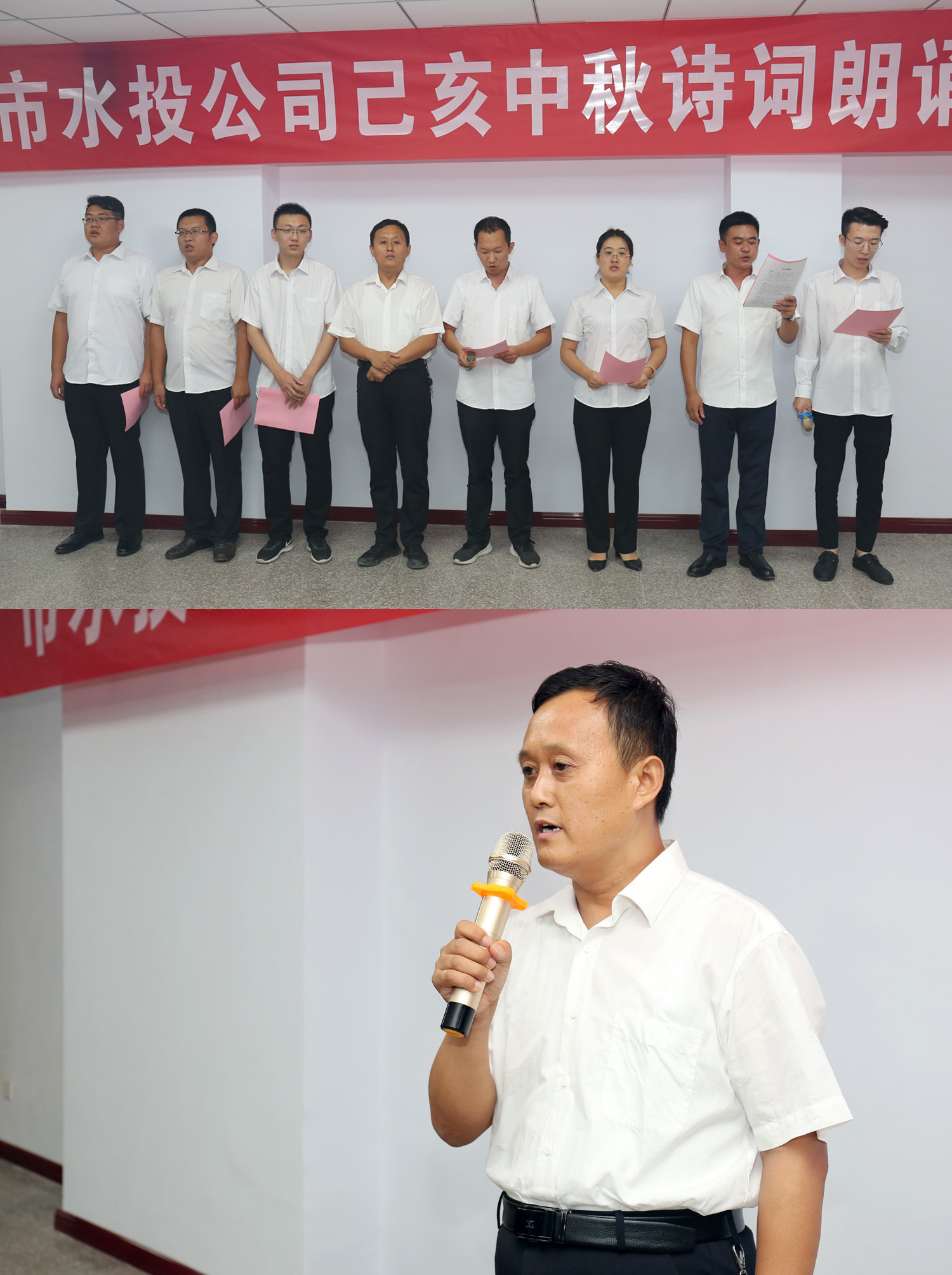 朗誦會(huì)開始前,公司黨委書記、董事長兼總經(jīng)理崔作銘致辭,向為水投建設(shè)發(fā)展辛勤耕耘默默奉獻(xiàn)的全體員工致以誠摯的問候和衷心的感謝,同時(shí)預(yù)祝各位員工中秋佳節(jié)快樂家庭幸福、身體健康。他希望全體員工“守初心、擔(dān)使命,找差距、抓落實(shí)”,以“長風(fēng)破浪會(huì)有時(shí),直掛云帆濟(jì)滄海”的豪情,以“千淘萬漉雖辛苦,吹盡狂沙始到金”的毅力,以抓鐵留痕,踏石留印的執(zhí)行精神,再寫傳奇,再譜新篇!