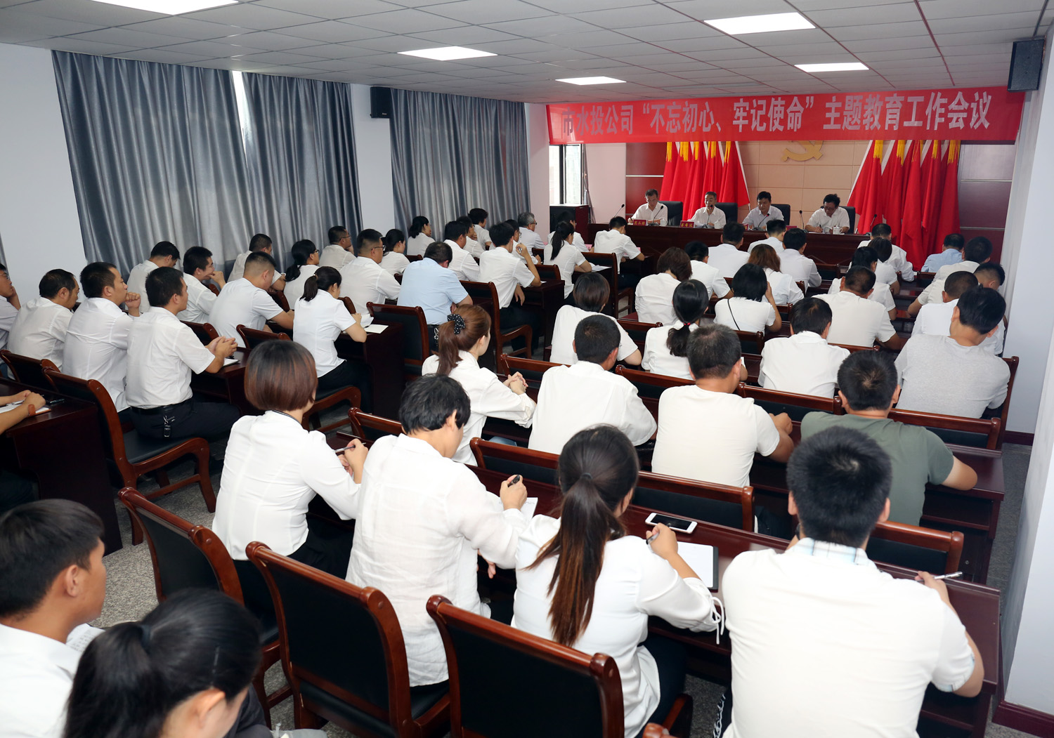 9月13日下午,我公司召開“不忘初心、牢記使命”主題教育工作會議,對扎實開展“不忘初心、牢記使命”主題教育進行動員部署。公司黨委書記崔作銘出席會議并講話,公司黨委委員呂希汶主持會議,市國資委主題教育第三指導小組到會指導,各黨(總)支部全體黨員參加會議。