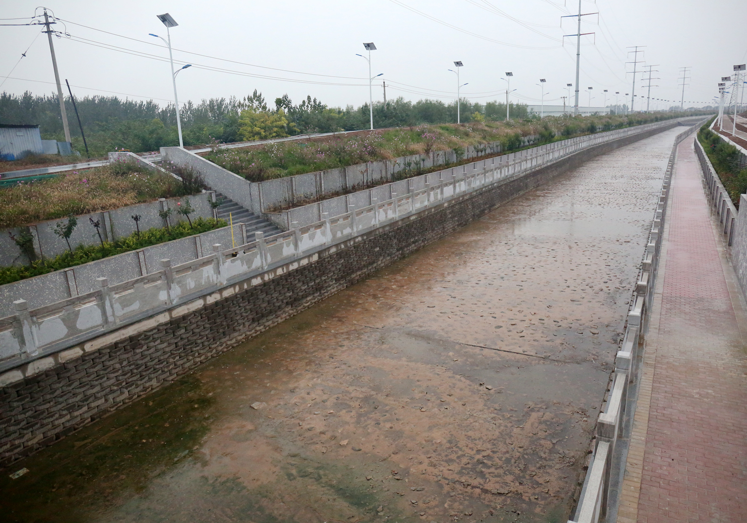 10月16日下午,秋雨連綿,崔作銘一行冒雨來到姚暹渠空港段項目工地,會同項目公司、項目部人員,對雨中的渠道進行逐段察看。崔作銘提出以下要求:一是加強安全質(zhì)量查擺整改;二是試水不用黃河水,泥沙含量大沉淀后不易清理,盡快與市水務局聯(lián)系對接,引入東花園清水;三是天涼了,加快綠植栽植工作;四是倒排工期,盡快完成附屬工程。