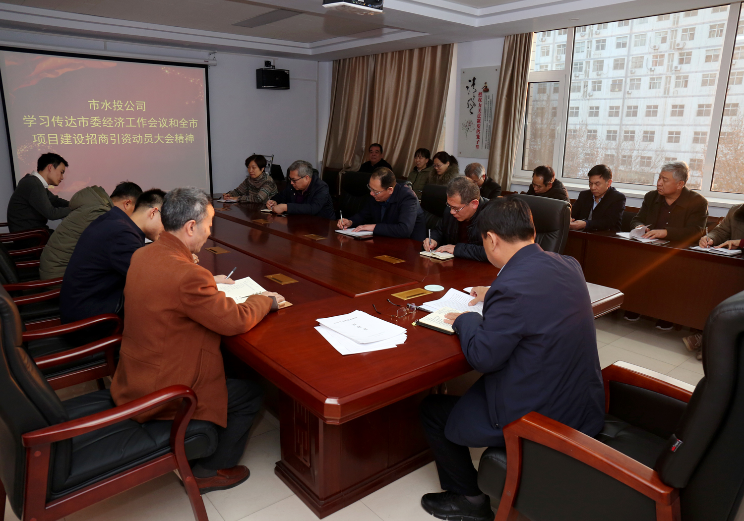 1月20日,我公司召開學(xué)習(xí)傳達(dá)市委經(jīng)濟(jì)工作會(huì)議精神和全市項(xiàng)目建設(shè)招商引資大會(huì)精神會(huì)議。公司班子成員、下屬單位班子成員和中層干部參會(huì)。