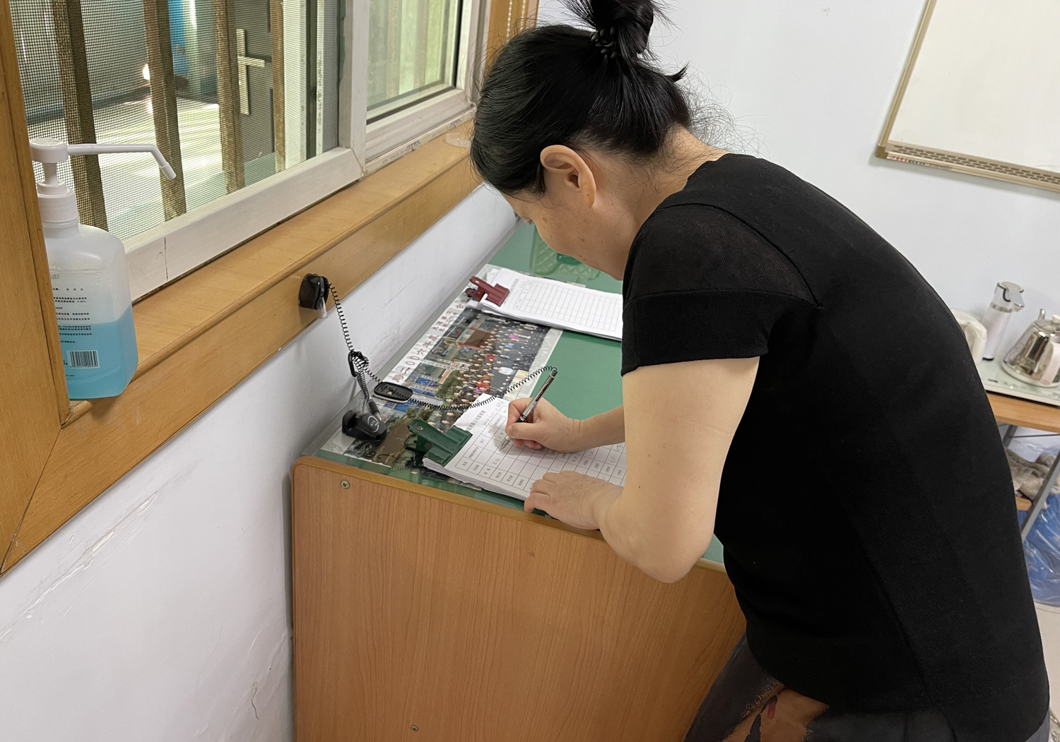 大家每日簽到時(shí),會(huì)在表格上記錄自己做過核酸的日期,五天一做,一目了然,快到期的員工看到之后就會(huì)自覺遵守。