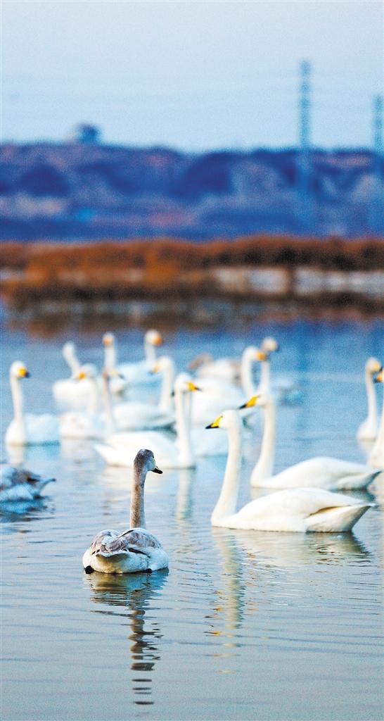 冬日暖陽下,幾十只野生天鵝在鹽湖濕地棲息,它們時而嬉戲,時而覓食,成為一道美麗的風(fēng)景,吸引眾多市民游客打卡觀賞。運城市鹽湖生態(tài)保護與開發(fā)中心的工作人員告訴記者,隨著生態(tài)環(huán)境持續(xù)向好,鹽湖已經(jīng)成為山西省鳥類多樣性最為豐富的區(qū)域之一,越來越多的候鳥前來過冬。與往年相比,天鵝的數(shù)量明顯增加。
