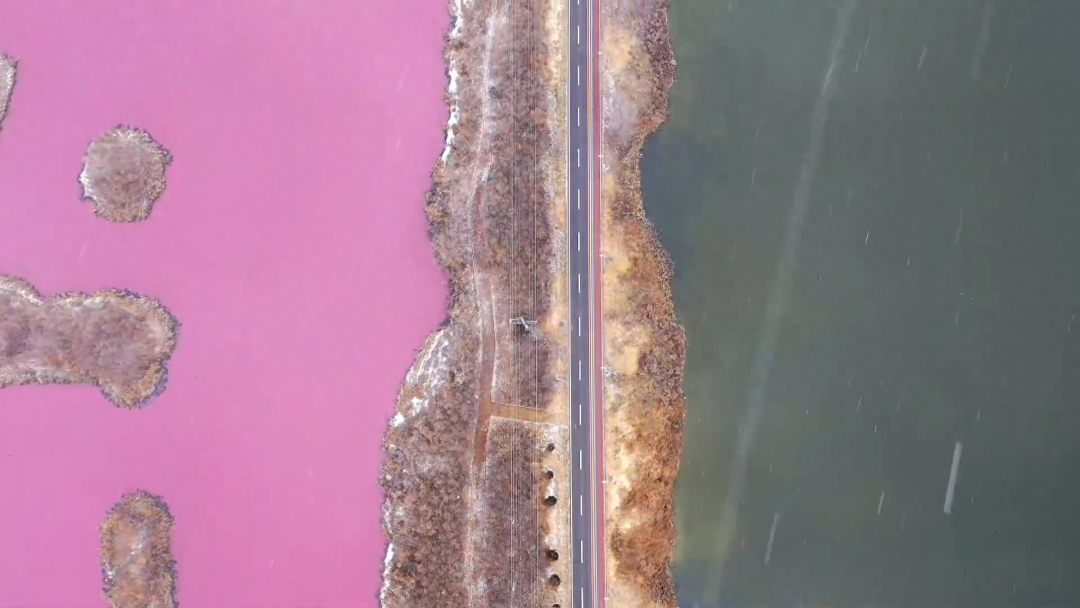 近日,山西運(yùn)城迎來大范圍降雪,冬日里呈現(xiàn)出多種顏色的鹽湖,在白雪的裝扮下分外美麗。