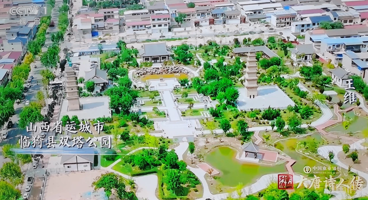 臨猗雙塔公園是王維兒時嬉戲的永福院所在地。探訪團走進雙塔公園,只見兩座巍峨高塔,歷經風雨洗禮與世代修繕,仍傲然矗立,見證歲月流轉。塔下,王維與王縉兩兄弟的雕塑巍然屹立,仿佛“穿越時空”的使者,向千年后的世人訴說著血濃于水的手足深情。